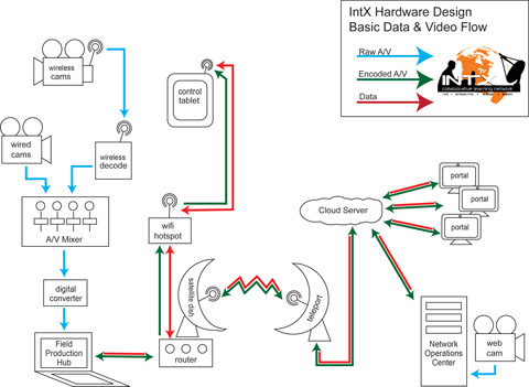 The Control Tablet is the centerpiece of the INTX network, which allows for synchronous learning management from remote field sites in novel ways. The person with the Tablet controls and facilitates video communications within the network. Using the Control Tablet together with multiple cameras and broadcast-style video-mixing, participants receive “on location training” and can provide instant feedback via video and text chat. UCF and our research partners continue to add novelty through optimizations for specific high-priority vertical market integrations that rely on remote satellite communications for their broadband internet access. Thereby, INTX will differentiate itself as a more effective and reliable augmentation of traditional online education systems.